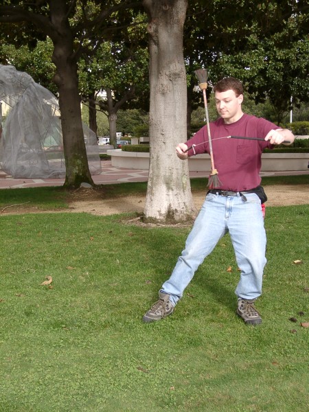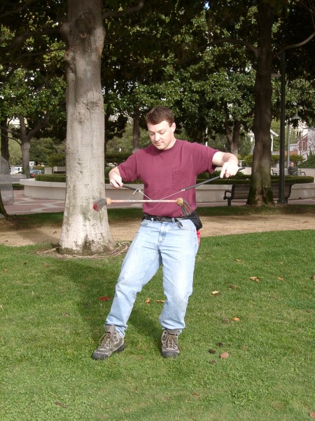 What do you get when you cross a diabolo with a devil stick? I don't know either, but I do know what happens when you swap the handsticks. I took two devil stick handsticks, drilled holes near the ends and tied standard diabolo string in the same way that diabolo handsticks are constructed.